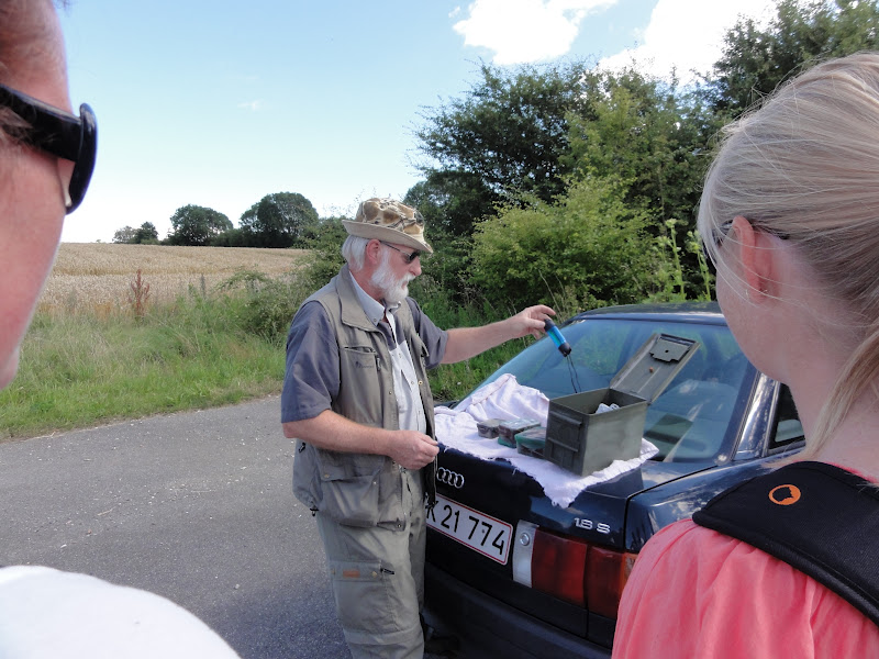 Efter frokosten ledte jeg pigerne sydpå til en ret øde parkeringsplads overfor Den Gamle Grænsekro ved Christiansfeld. På P-pladsen stod en lidt ældre herre i “jagt/natur-dress”. Ham havde jeg lavet en aftale med, og han lavede også lidt fis med pigerne ved at få dem til at tro, at de skulle alt muligt, som de ikke skulle. Niels er godt nok jæger, men det er skattejæger – Geocacher.