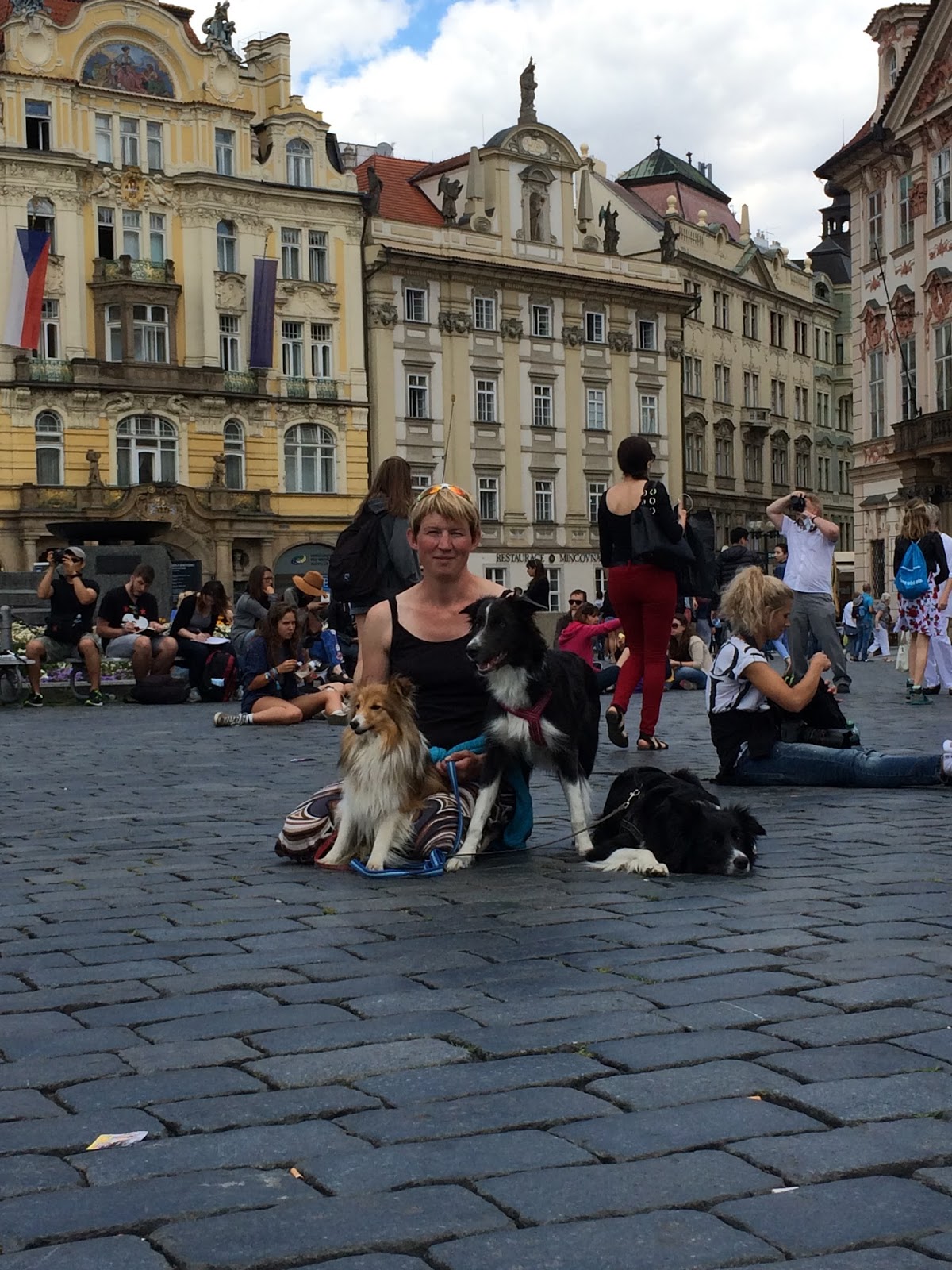 Egentlig skulle jeg have haft en lille hat med, som jeg kunne lægge foran mig, når jeg sad og ventede udenfor en eller anden bygning, som Henrik og Silas udforskede, for mit lille hundespand tiltrak sig noget opmærksomhed og der kom også nogle stykker hen og ville have taget billeder sammen med hundene eller tog billeder af mig og hundene. Ja, tænk at tre søde hunde kan blive en lige så stor attraktion som tjekkisk arkitektur.
