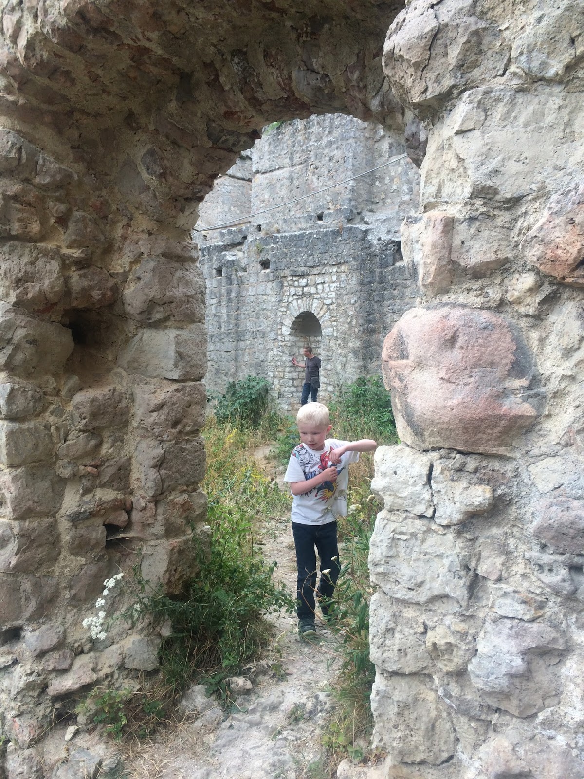 Ikke langt fra Rieden så vi et skilt med noget, der kunne ligne en borg og kørte efter det. Vi endte så i Kalzmühle og fandt et rimelig stort borgruinanlæg med mange trapper op til og det gav også bonus med en god udsigt.