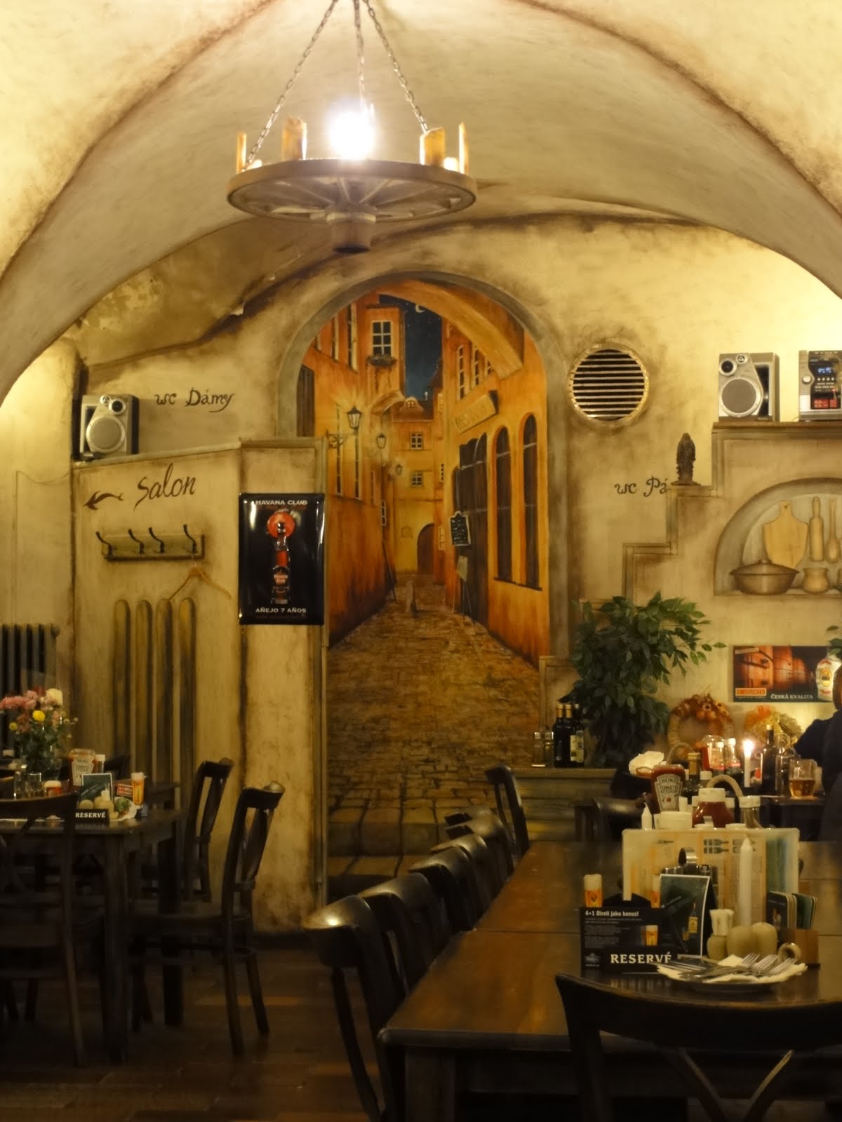 Det var en lang og kold dag i Zoo og vi afsluttede ferien med at gå en sidste tur inde omkring Karslbroen og Den Gl. Rådhusplads. Da vi spiste aftensmad satte vi os det mål, at vi skulle se om vi tilsammen kunne spise og drikke for kr. 500. Det lykkedes slet ikke. De fleste aftener havde vi faktisk spist for omkring kr. 200 for alle tre personer (kræsne Silas fik ikke altid mad fra restauranten, men ligeså tit fra rygsækken). Det er ufattelig billigt at gå ud at spise i Prag og portionerne er ikke små (og ikke fedtfattige).