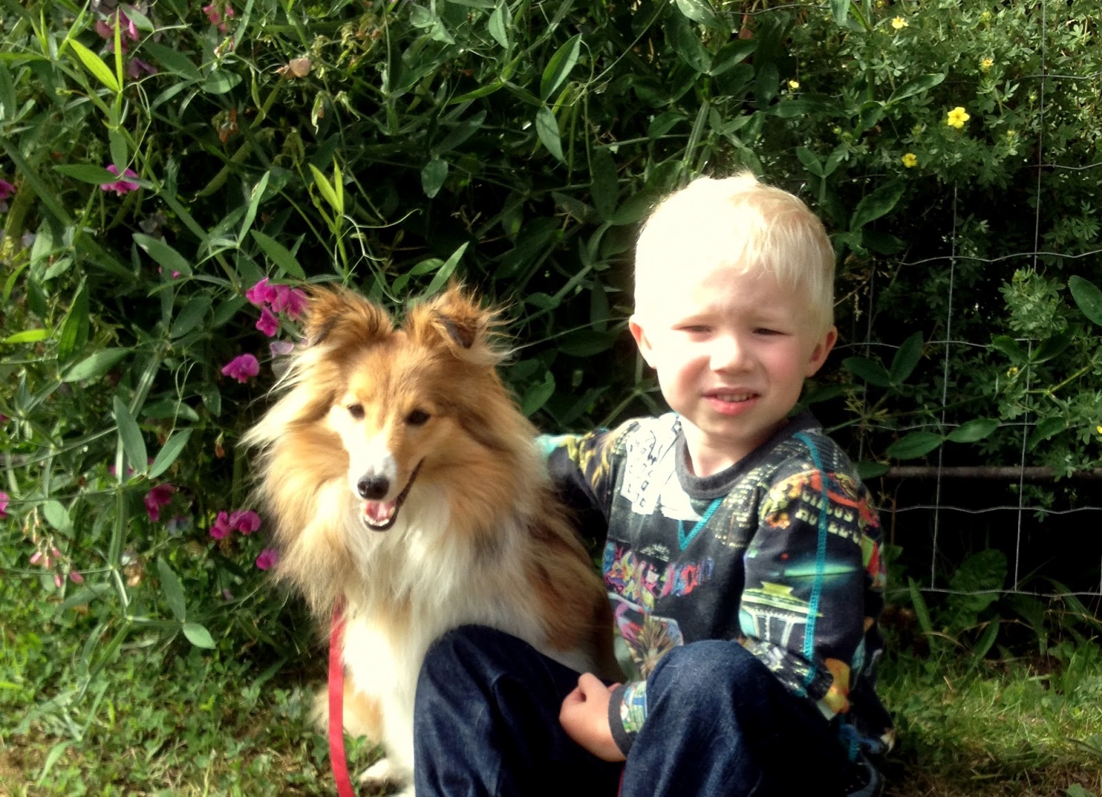 Det har altid været sådan, at Silas har accepteret mine hunde, men aldrig villet dem eller interesseret sig spor for dem. I det hele taget interesserer han sig utrolig lidt for hunde og tager normalt aldrig kontakt til andres hunde. Faktisk er han nærmere lidt bange for andres hunde, og da han i pinsen oplevede, at en hund til vores stævne i Ribe hoppede op og nappede ham i jakkeærmet, så tænkte jeg, at det nok ville få enormt lange udsigter med hans positivitet overfor hunde efter den kedelige oplevelse. Og eftersom hunden i den kedelig oplevelse var en sheltie, så havde jeg da nok ikke forventet, at det netop var en sheltie, der skulle omvende Silas.