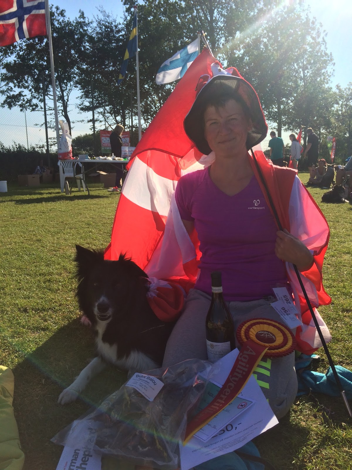 Så ja, første dag var sgu mægtig, men så kneb det også derfra med de fejlfrie løb, og jeg fik et par dage uden, at nogen af hundene kunne løbe fejlfrit. Det var en anelse frustrerende, men jeg fik tænkt lidt over det. Mine løb og min kommunikation med begge hunde fungerede, og det var sådan nogle små ting, som gjorde, at løbene ikke var fuldendte. Konklusionen var, at vi var tæt på at være “der”, hvilket jo ville være meget bedre end, hvis mine hunde var vildt langsomme eller løbene var total rodede og det var tilfældighederne, der førte os gennem banerne. Så jeg forsøgte at bevare optimismen, og kom stærkt igen dagen efter hviledagen, hvor Ninja og jeg fik trykket et super godt AG3 løb af. Det var virkelig et godt løb, og det indbragte mig 1. pladsen (foran 116 dygtige ekvipager). Det var helt vildt. Jeg indkasserede også et agilitycertifikat for præstationen, så nu mangler vi blot et cert. for, at Ninja kan kalde sig DKAGCH.