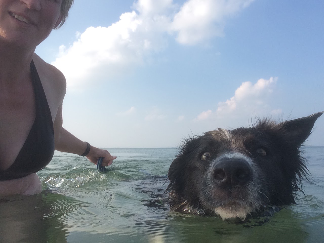 Vi havde en fantastisk badeferie, hvor vi, når der var lavvande, gik ud i sejlrenden og tog en dukkert i det klareste og mest lækre vand. Vi havde alle hundene med, og der gik vi så ude på det lave vand med ca 30 hunde løs mellem hinanden. Det gik let og smertefrit uden konflikter mellem hundene, selvom mange af dem ikke kendte hinanden på forhånd.