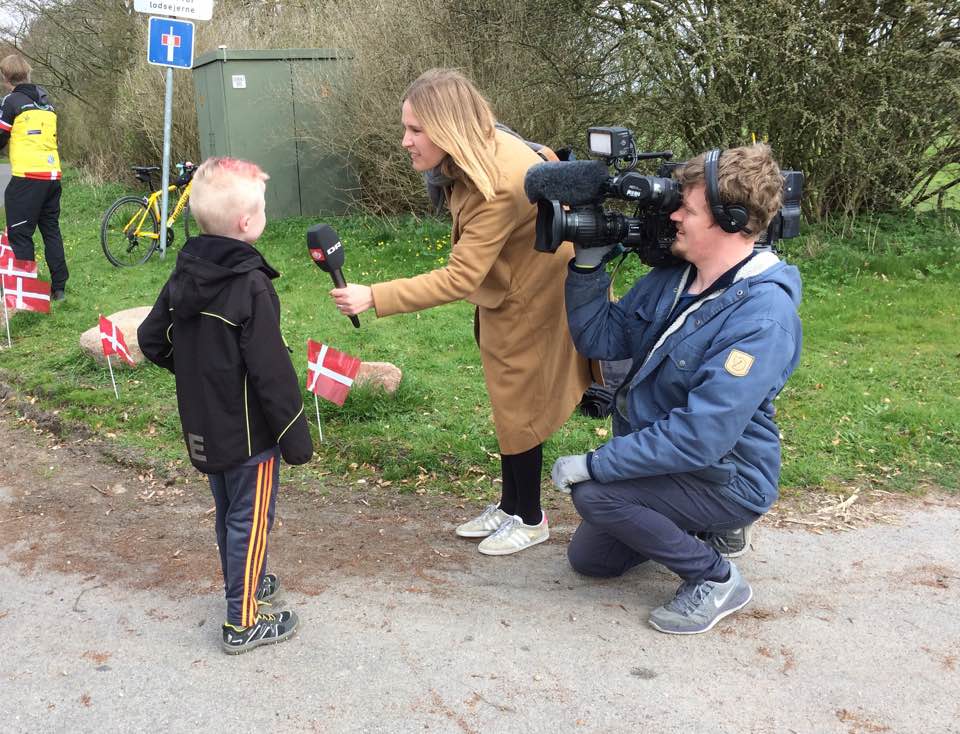 Silas´ lærer fra hans tid i 0. klasse cykler med på Team Rynkeby Sønderjylland, og hun spurgte mig for noget tid siden, om vi ville medvirke i et indslag vedr. arrangementet. Hun forventede et radioindslag, men hvad det helt præcist ville ende ud i, vidste vi faktisk ikke før kl 11.45, da DR stod på skolen.