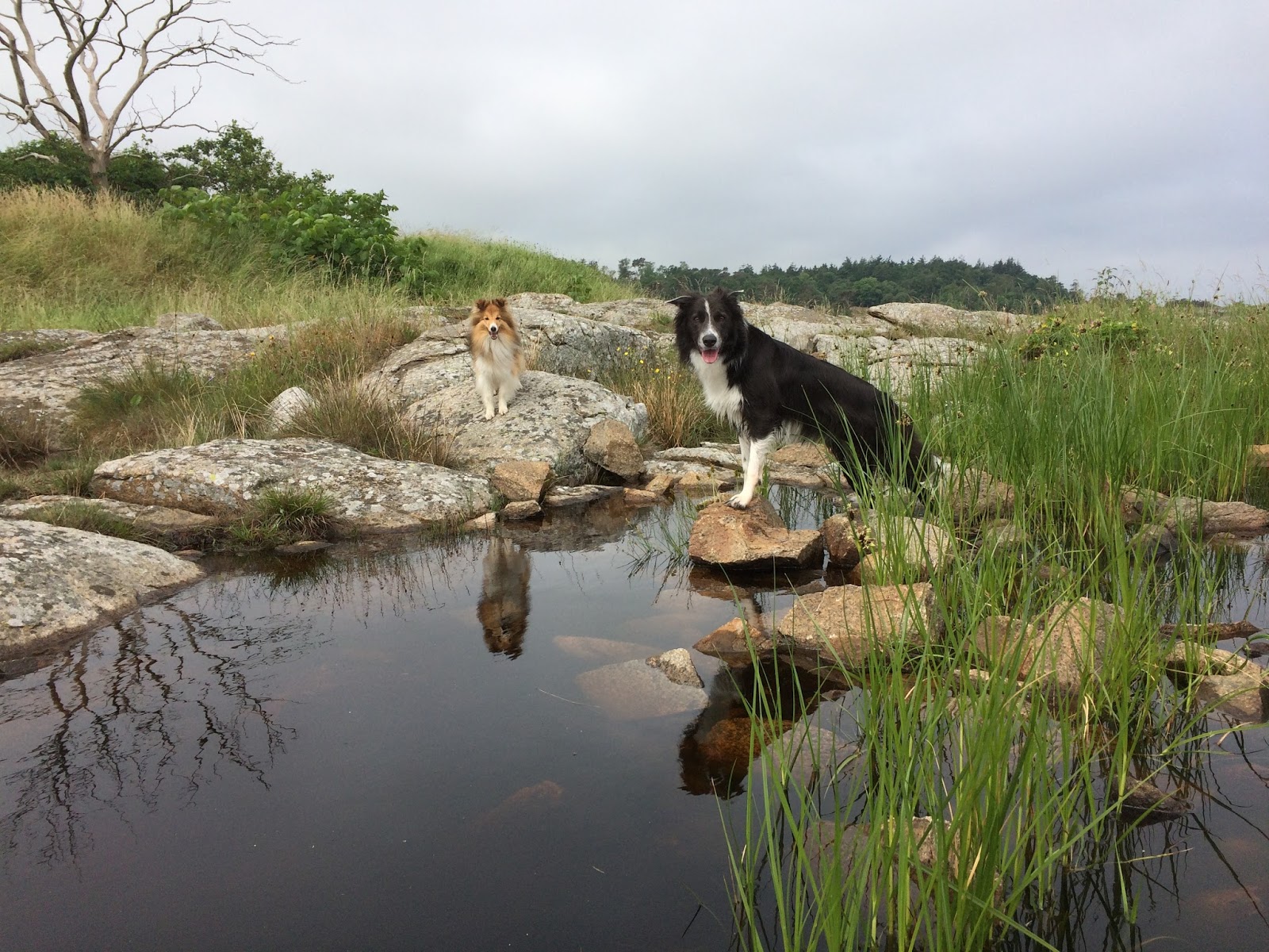 for dem (og mig i den anden ende af snorene). Henrik og Silas måtte tage turen alene hen til Den sorte gryde, mens jeg blev tilbage på det første stykke af klipperne med hundene og nød det gode vejr.