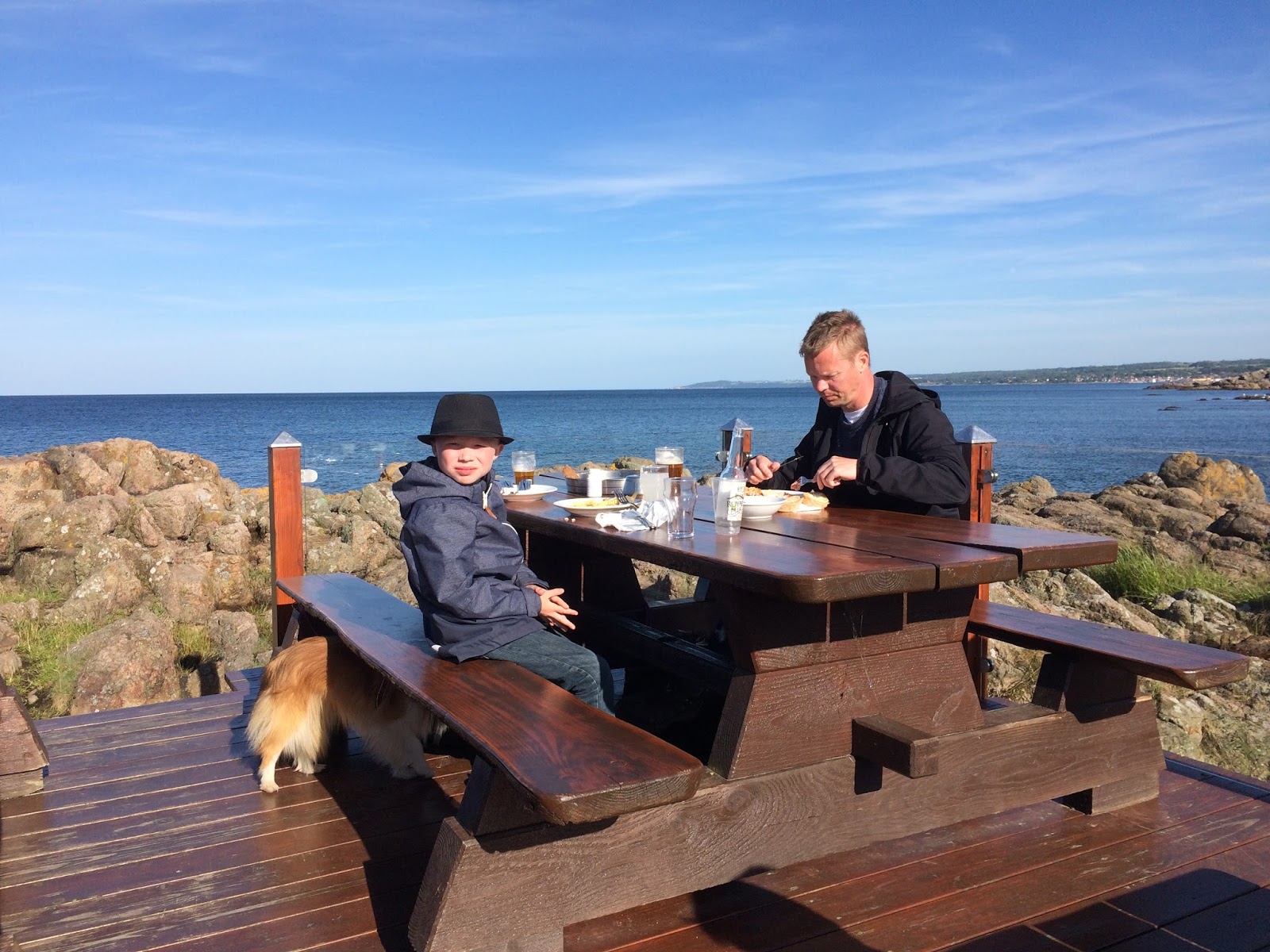 Vi tog et velforjent hvil på Hammer Havn, hvor vi fandt en meget lækker lille Havne café/ishus, hvor alt så ud til at være lavet fra bunden. Her nød vi en forfriskning og kom på toilet, inden vi fortsatte den smukke tur.