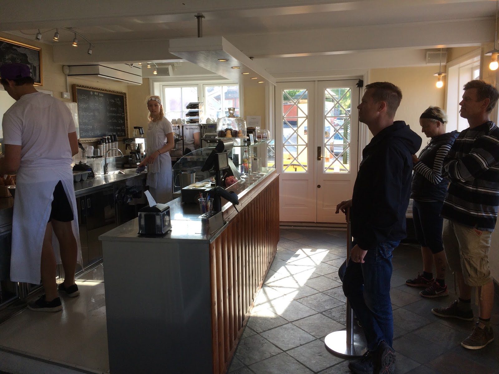 Vi fandt noget morgenmad hos en bager i Rønne og kørte