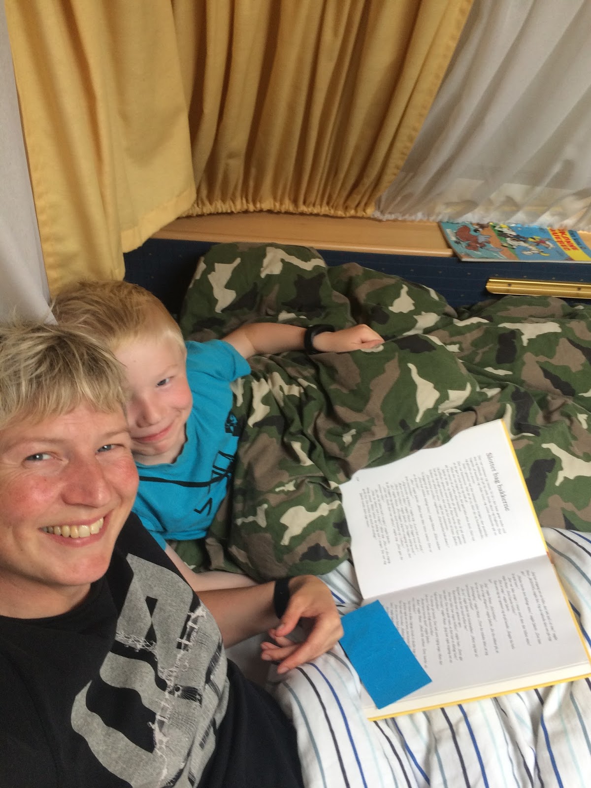 Dagen efter vågnede vi op til heldagsregn. Det gav rig mulighed for at ligge/sidde i campingvognen og læse bøger under dynen og spille spil.